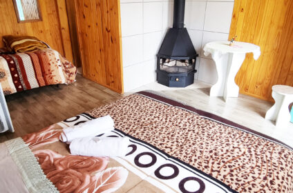 Nossos chalés foram cuidadosamente projetados para proporcionar um ambiente acolhedor e agradável durante toda a sua estadia. Cada chalé possui uma lareira, que traz um toque especial aos dias mais frios, criando um ambiente acolhedor.