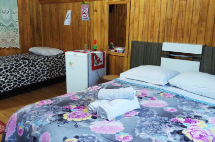 Além das lareiras, nossos chalés também estão equipados com todas as comodidades necessárias para garantir uma estadia confortável para você e sua família. Quartos espaçosos, camas confortáveis, banheiro privativo, televisão e Wi-Fi estão disponíveis em cada chalé.
